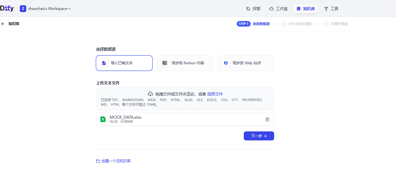 点击Dify上方的知识库菜单