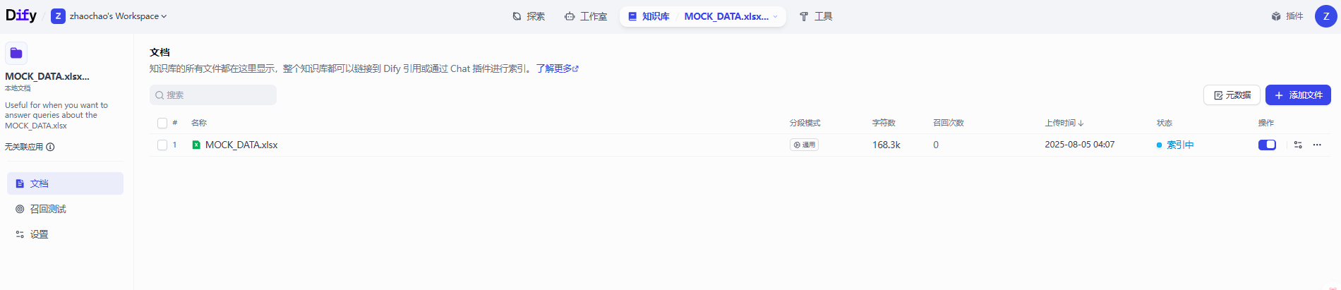 创建完成后只需要等待知识库索引完成,就可以使用了