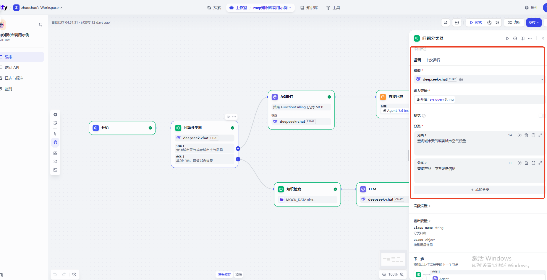 首席按可以使用问题分类器进行用户问题分类,使用的是deepseek模型
